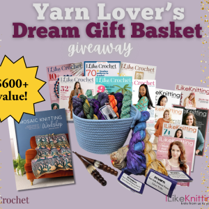 Calling all knitters and crocheters, we’re delighted to unveil the 2026 Yarn Lover’s Dream Gift Basket Giveaway, a yearlong celebration of creativity, color and the vibrant community that makes the yarn world one of the friendliest communities to be a part of. Whether you’ve been crocheting and knitting for years or you want to start a new hobby, this overflowing prize package is designed to inspire.