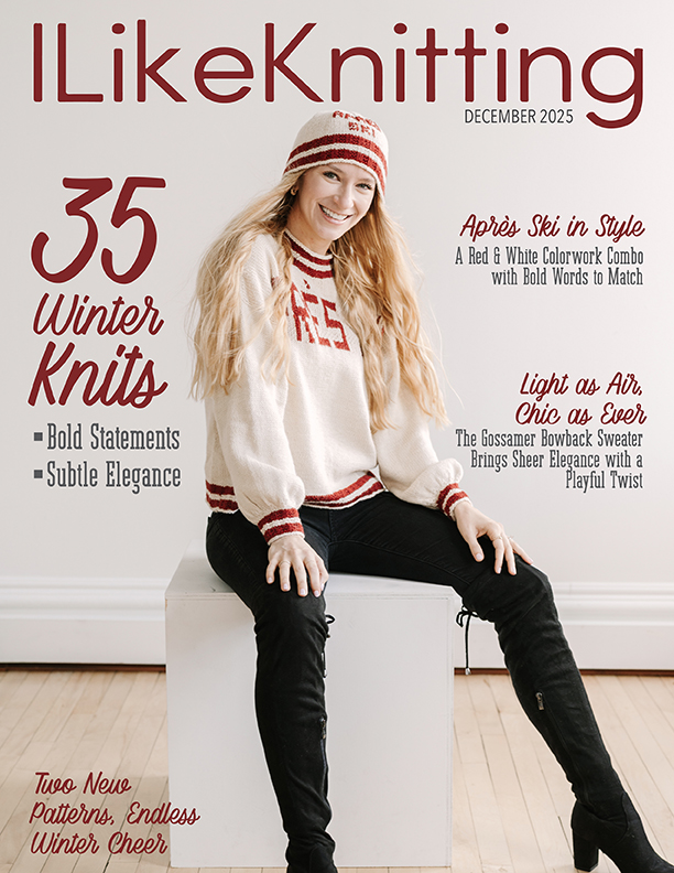 Chase away the winter blues with the December issue of I Like Knitting, featuring cozy knits inspired by luxurious ski resorts and your favorite winter getaway location. Start by knitting up our current obsession: The Après Ski Set, which includes a hat and sweater combination with just the right amount of vintage appeal. Next, the