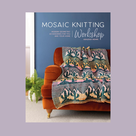 Mosaic knitting is a quick-to-learn technique that will enable you to make beautiful, colorful knitted projects in no time. This collection of techniques and knitting patterns for mosaic knitted homewares and accessories, includes everything you need to get started with this exciting technique. Unlike other knitting colorwork techniques, mosaic knitting is beginner friendly – if you can knit, purl and slip a stitch you can make these projects. The patterns in this collection avoid any complicated shaping and are knitted flat to keep them as accessible and beginner friendly as possible. Mosaic knitting patterns are essentially knitting stripes and slipping stitches in a pattern to creating striking geometric motifs. With mosaic knitting you only work one color per row, so you don’t have to worry about carrying floats of yarn like you do with stranded colorwork techniques. Readers are led through the basics with step-by-step instructions and diagrams so that they can master the techniques before trying out their skills on 15 different projects. All of the patterns are accompanied with charts and there are instructions for how to follow the mosaic knitting charts, as well as how to read the written patterns, how to work in stockinette (stocking) stitch and how to carry yarn up the side of your work.