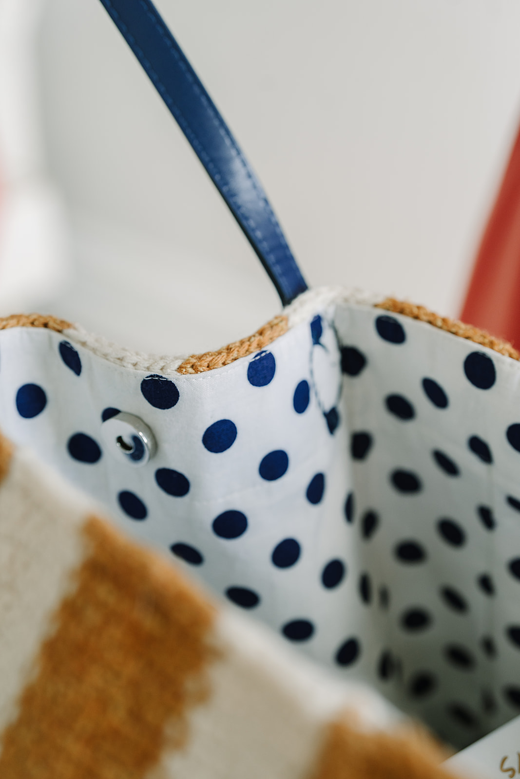 Following photo of tote for placement of straps, hand sew through all layers with matching upholstery or carpet thread following package directions.