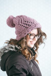 Make a large compact pompom approx. 3.75” (9.5 cm) in diameter and sew it to the top of hat.